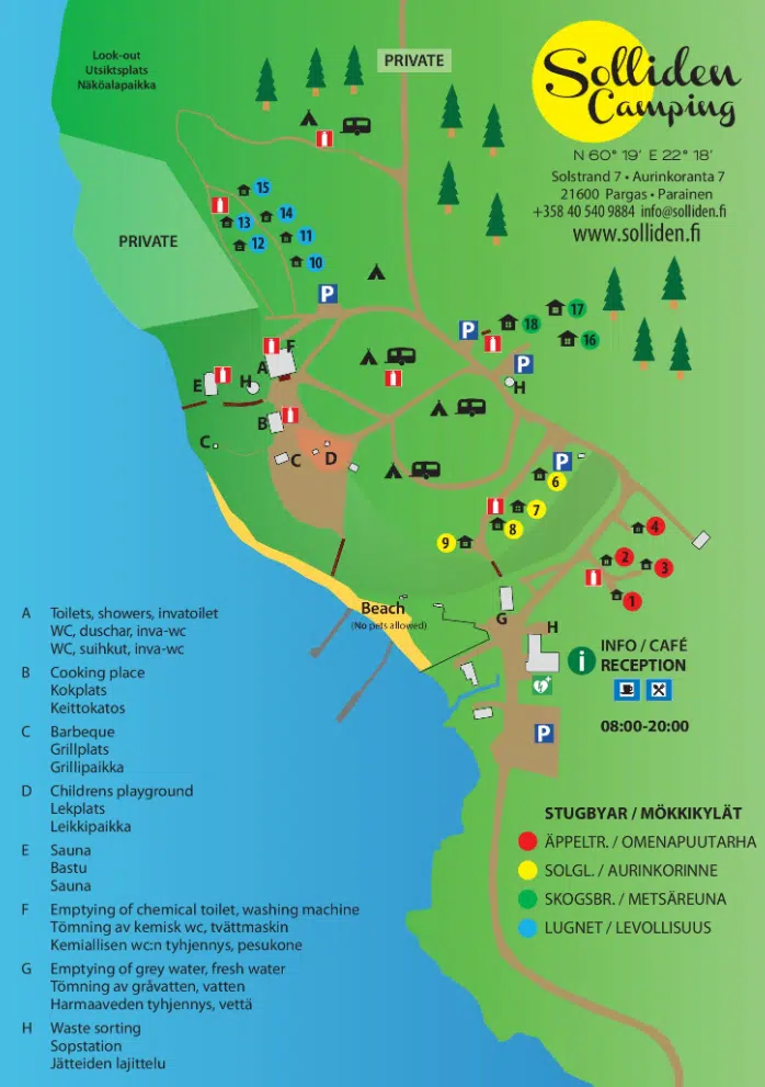Sollidenissa on 17 leirintämökkiä jaettuna neljään eri mökkikylään.
